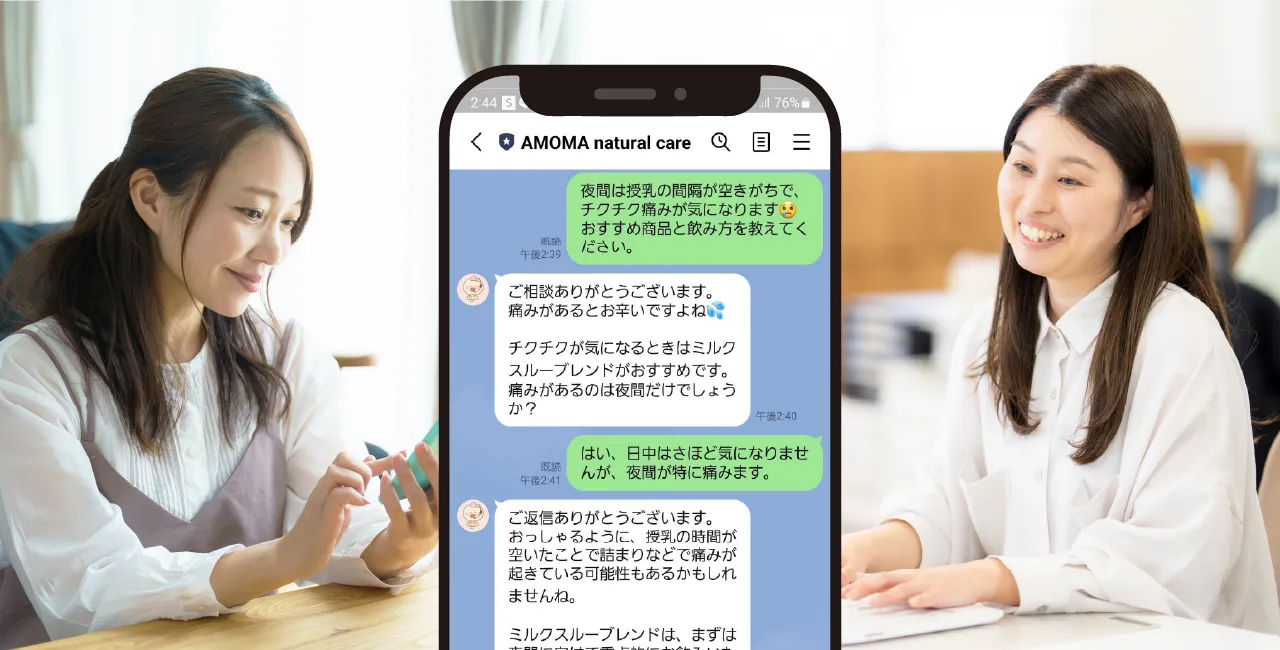 「授乳回数の減らし方」や「ミルクセーブブレンドの飲み方」などを個別の状況に合わせてご案内します。