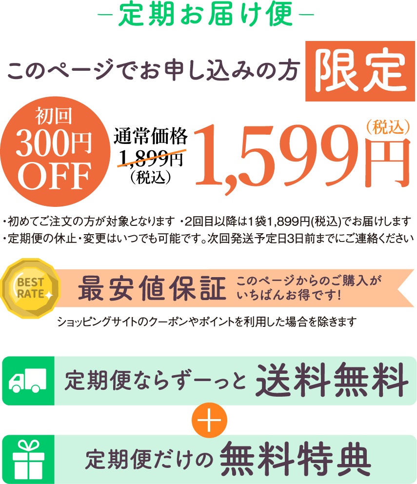・このページからのお申し込みは、毎月1回お届けする「定期便」となります。